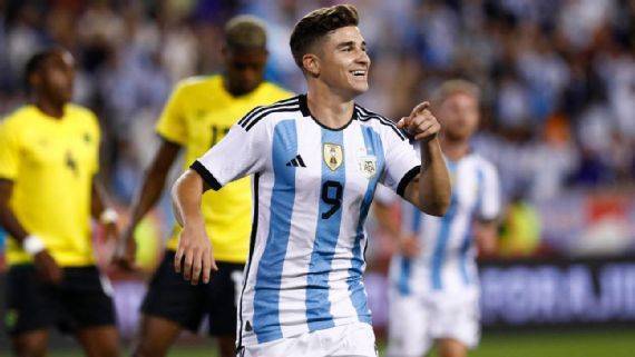 正在将来几年里,阿尔瓦雷斯将为阿根廷队贡献更多。正在打败牙买加的较量中,他为球队首开纪录,这也是他正在国度队的第二粒进球。较量下半场,他与梅西合营的很好,后者正在较量序幕阶段演出梅开二度。