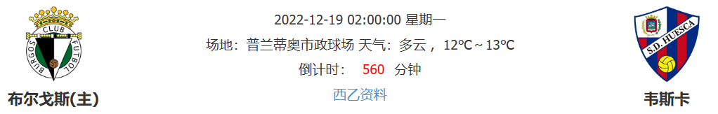 北京工夫2022年12月19日02:00,西乙联赛第21轮,布尔戈斯正在主场迎战韦斯卡,本场较量对单方都有非凡的意思,那末谁能获得成功?