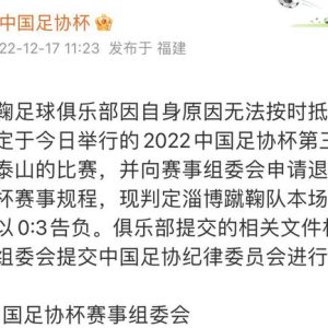 12月18日下午,2022中国足协杯第3轮先赛2场。济南兴洲3-2险胜泾川文汇,沧州雄狮3-1力克广州队,济南兴洲与沧州雄狮携手闯入8强。