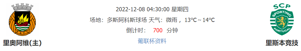 北京工夫12月8日04:30,葡联杯小组赛持续进行,本场较量的对决单方是里奥阿维与里斯本竞技,较量地址是多斯阿科斯球场。
