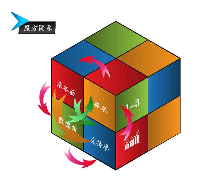 行使自己專業知識領域探索出根本面、數據面、支持率、賽果四者之間存正在的內部聯系,成為「魔方關系」