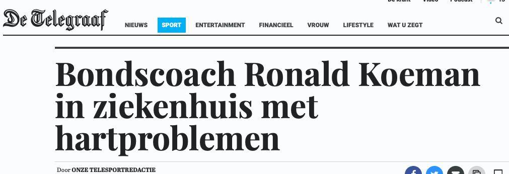命悬一线!荷兰国家队主教练科曼被送往医院抢救 今年53岁