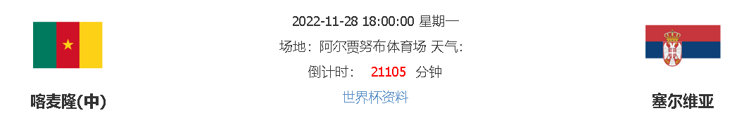 喀麦隆vs塞尔维亚 主客预期争第二顺位