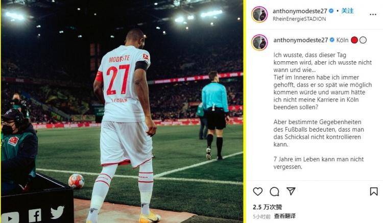 莫德斯特密意辞别科隆:我没有会为钱分开,去多特为圆欧冠梦 直播吧8月9日讯 多特蒙德正在没有久前官宣签下科隆中锋莫德斯特,后者也发文同科隆密意辞别: “科隆,我晓得这一天早晚会到来,但我也没有晓得会是什么时候、又是以怎么的形式……” “心田深处,我不断心愿这一天越晚越好,我为何不克不及正在科隆