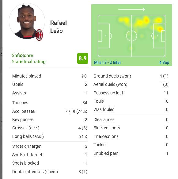 2个进球1次助攻帮米兰赢得德比 莱奥获全场最高分