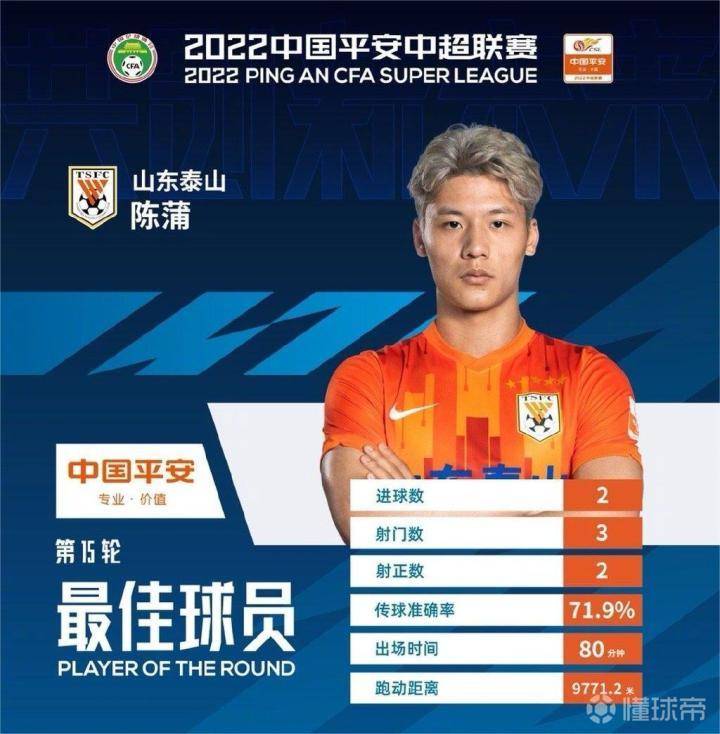 梅开二度助泰山队获胜,官方:陈蒲当选中超第15轮最佳球员