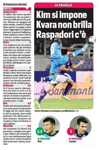 对阵佛罗伦萨,金玟哉获得全队最高分。
