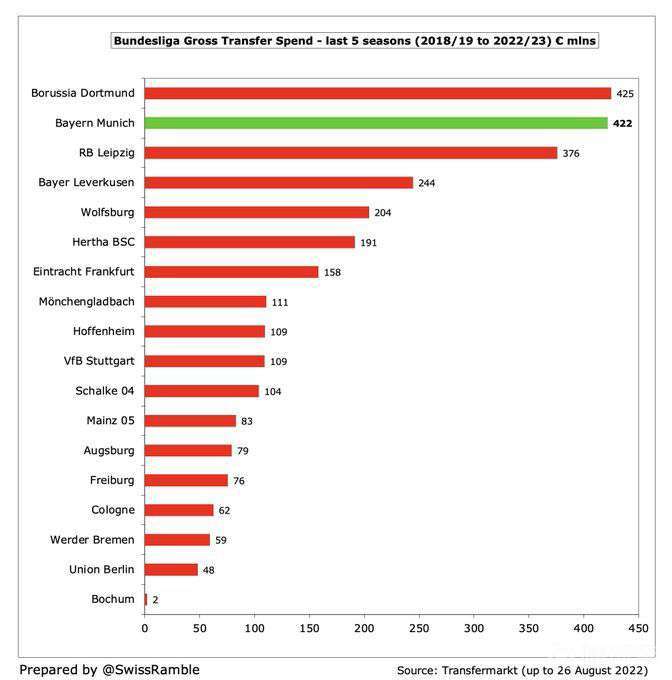 看看吧 过去5年堡的转会支出总额 我们在德甲俱乐部中排名第5 堡有钱 成绩不好而已 你仁和你横成绩又好又有钱