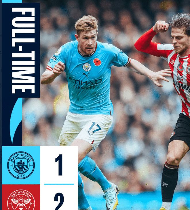 亚博体育11月12日报道:北京时间11月12日晚20点30分,2022/23赛季英超第16轮,曼城主场迎战布伦特福德。上半时,伊万-托尼头球破门为布伦特福德首开纪录,福登伤停补时阶段抽射破门帮助曼城扳平比分;下半时伤停补时阶段,伊万托尼破门帮助布伦特福德完成绝杀。全场比赛结束,曼城1-2负于布伦特福