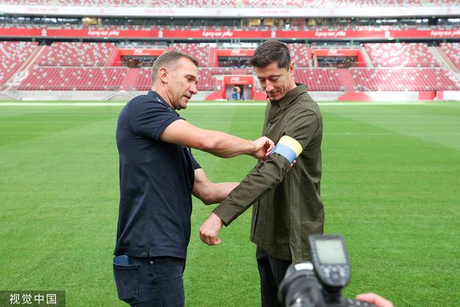 舍瓦送莱万乌克兰配色袖标 莱万承诺:世界杯就戴它