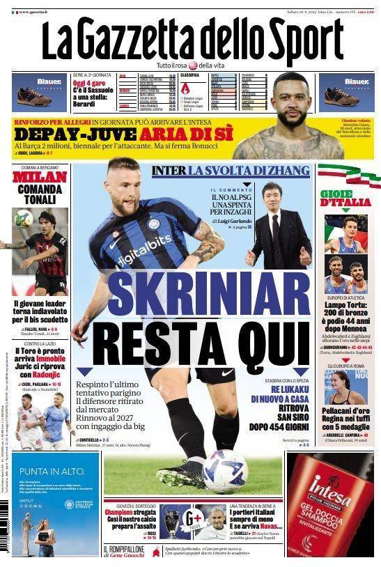 米体头版:尤文将200万欧签德佩 国米可能与什克续约至2027年 直播吧8月20日讯 《米兰体育报》昔日头版聚焦了尤文图斯、国内米兰的转会市场 -尤文图斯可能正在明天就签下德佩的转会事宜告竣协定,巴萨将失去200万欧元转会费,德佩将与尤文签约2年。如今各方对实现买卖感应悲观。 -国内米兰主席张