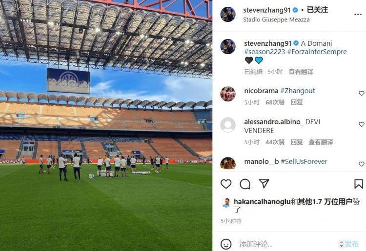 国米主席张康阳观摩球队训练课,恰尔汗奥卢点赞