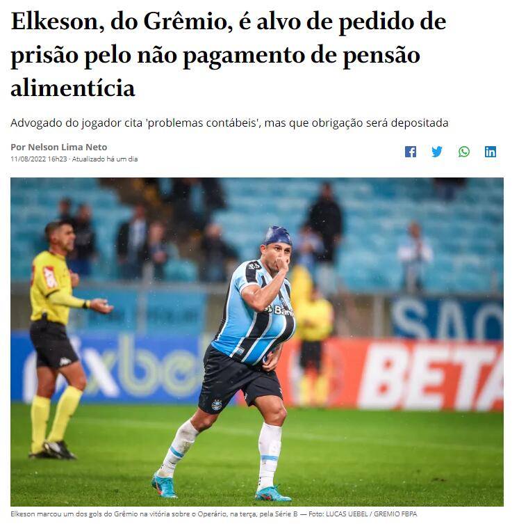 正在巴乙联赛中梅开二度之后,中国男足的归化先锋艾克森遭逢了讼事费事:据巴西媒体《O GLOBO》报导称,因为不领取子女扶养费,艾克森被前妻告上了法庭。 今朝,来自里约热内卢的法院曾经签订了对艾克森的拘捕令,据艾克森的前妻称,自2015年以来,艾克森需求每个月领取给她子女的扶养费,但正在比来一次的领